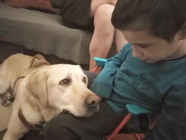 A CWD facility dog is expertly trained to perform service dog commands like picking up items, opening doors, and providing calming pressure across a client's lap or body. These skills are designed to enhance therapies, encourage participation, and reduce anxiety for clients in professional settings. In hospitals, they may offer mobility support, while in schools, they can perform behavior intervention tasks for children.